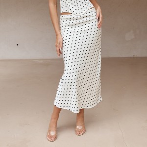 Description:Our Midi Skirt is a timeless cut in a polka dot print, perfect for day and night,Thin elastic waist band,Lined without stretch.